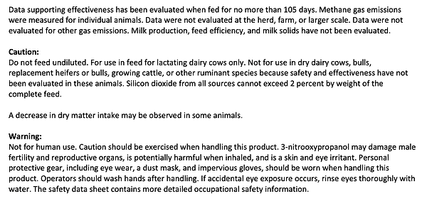 Additionally, safety studies have shown mixed results. In one trial, cows fed the highest doses of 3-NOP experienced reduced feed intake and lower heart weights. Another study reported smaller ovaries and decreased enzyme activity in cows on high doses.