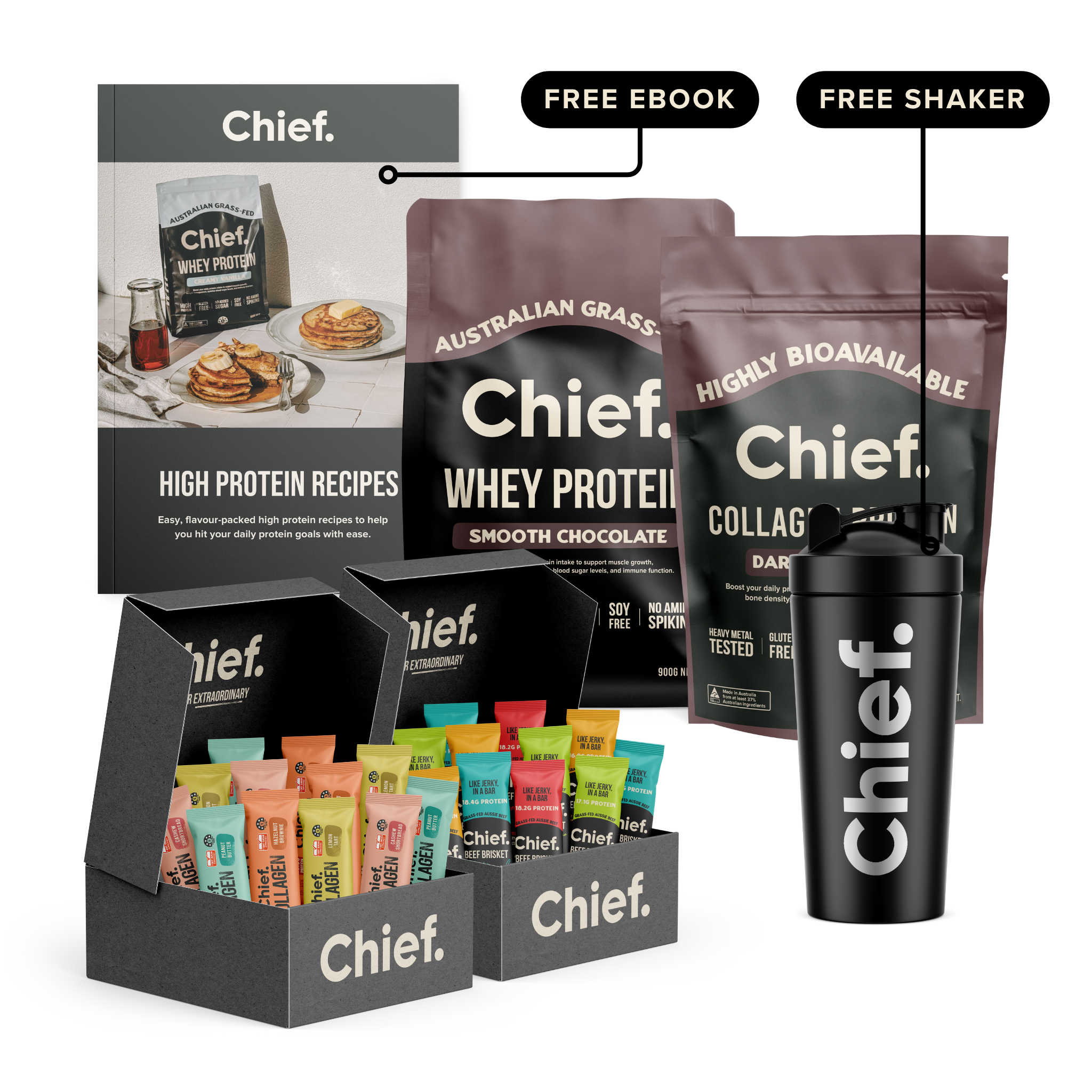 - Collagen Protein Bars (12 bars, 16g protein per bar - non choc for maximum protein)