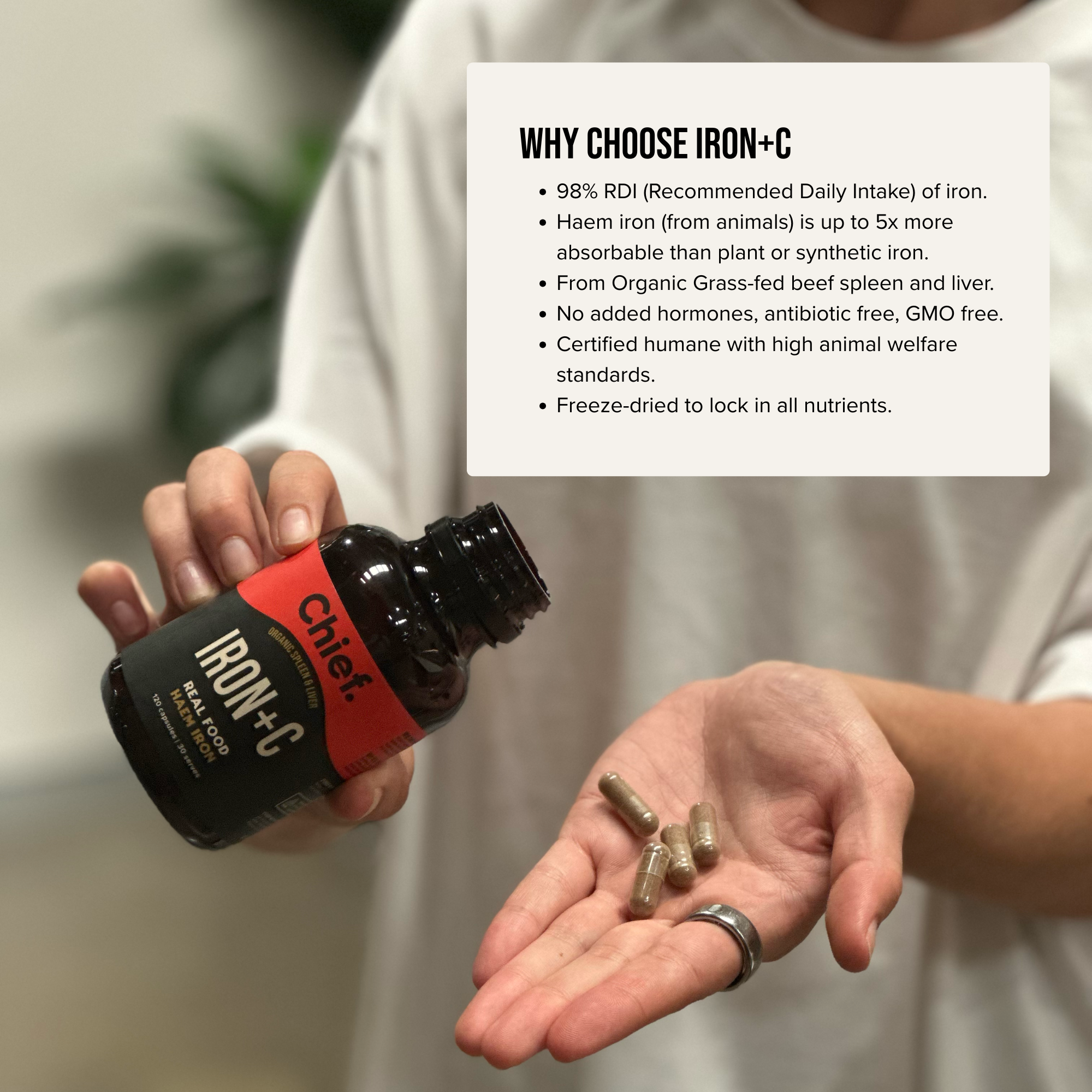 Real food haem iron, 98% of your daily iron needs