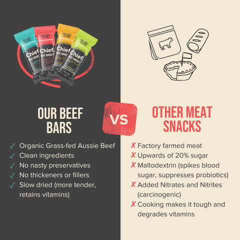 Clean, meaty snacks to satisfy your savoury cravings. Taste the difference with organic, grass-fed, grass-finished Aussie beef. Free from all the nasty stuff you usually find in dried and cured meats.