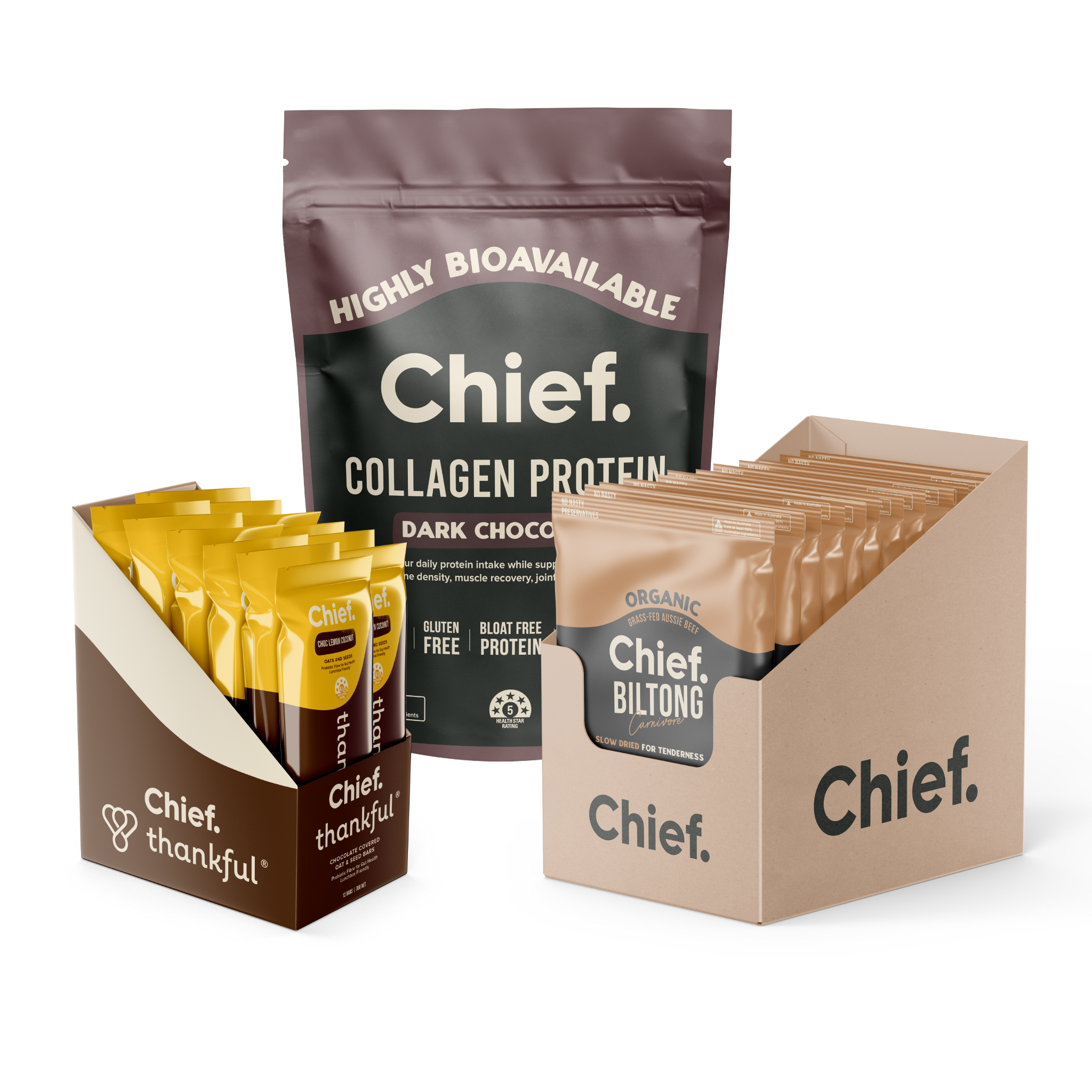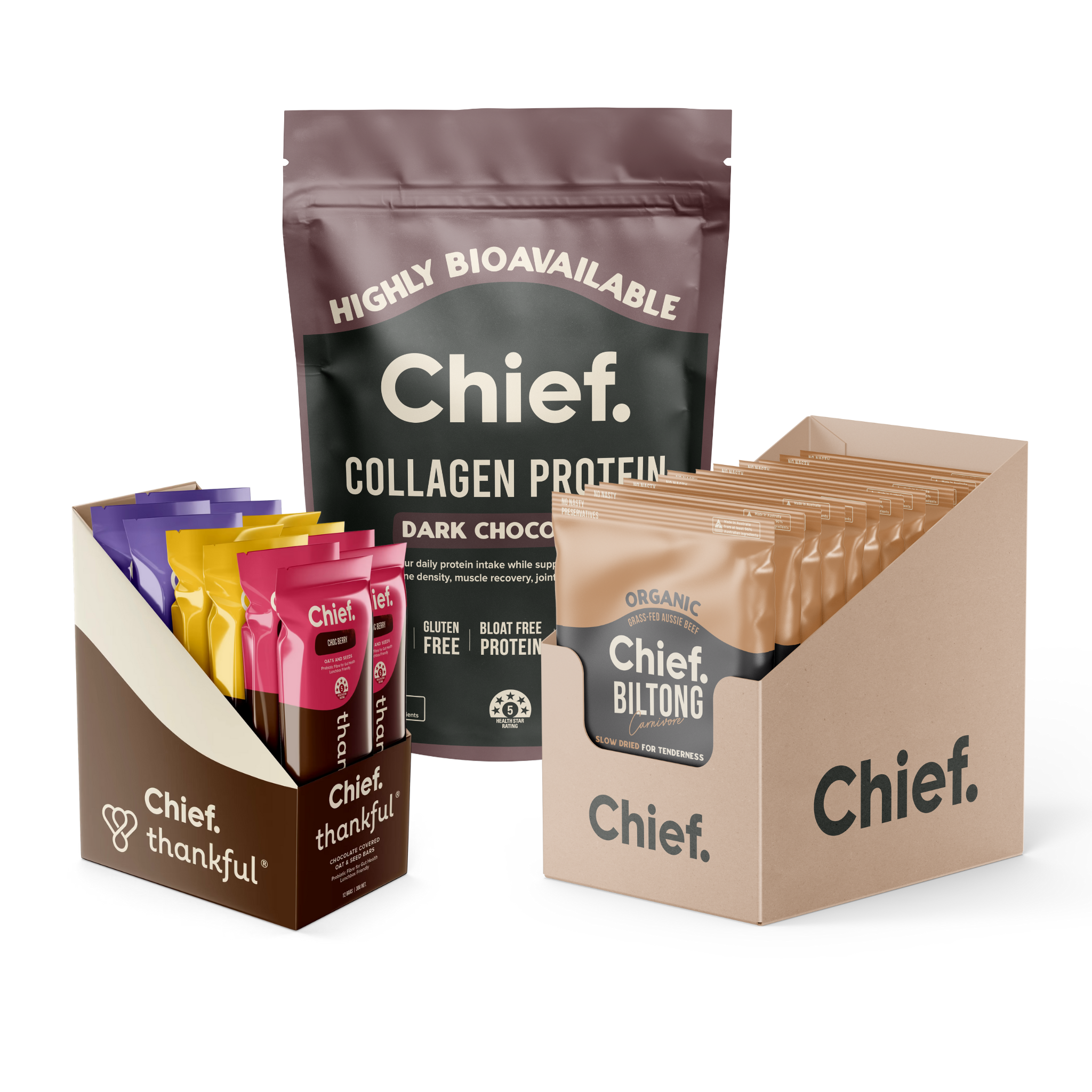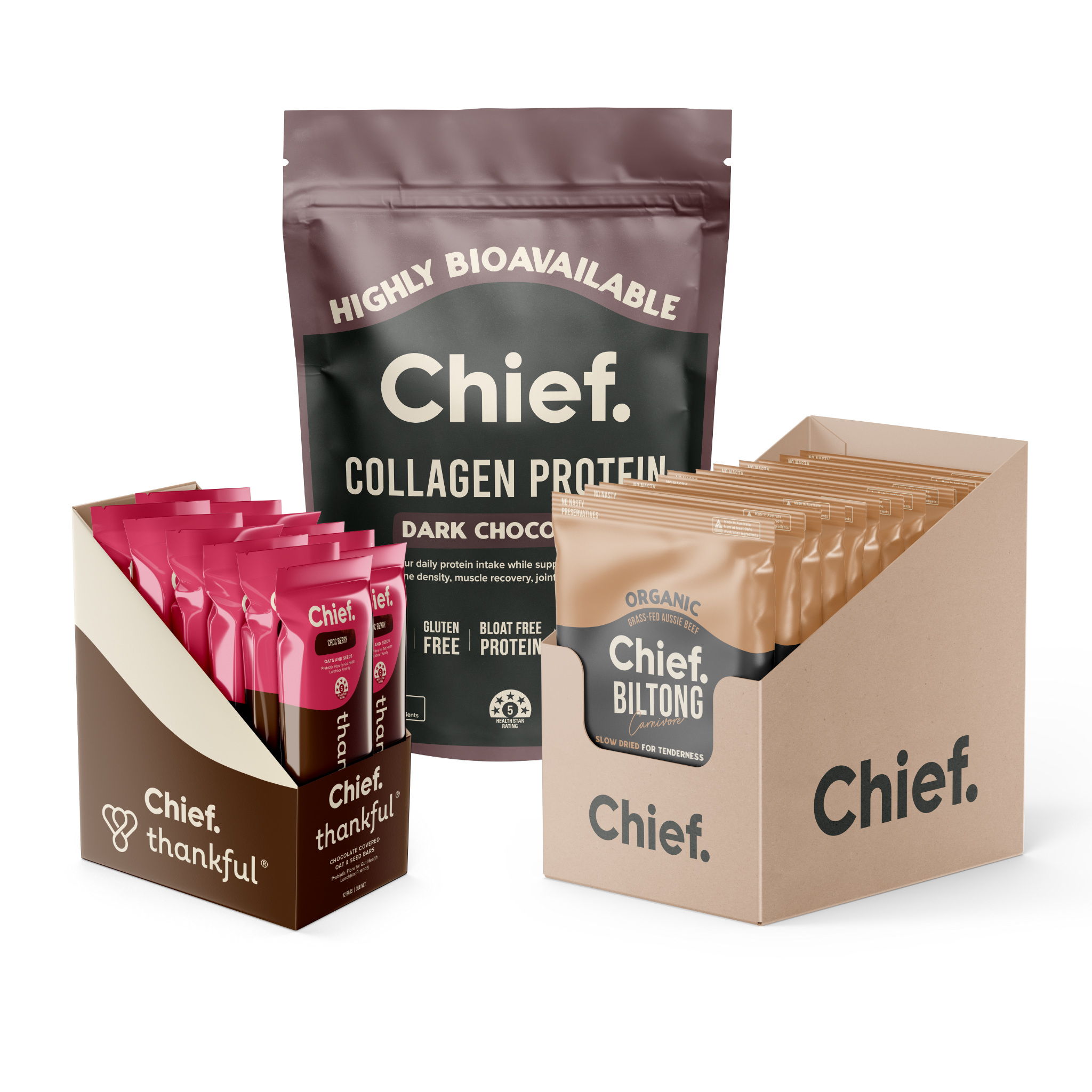- Chief Collagen Powder – easy to stir into yoghurt, bliss balls, or baking for a protein + gut health boost.