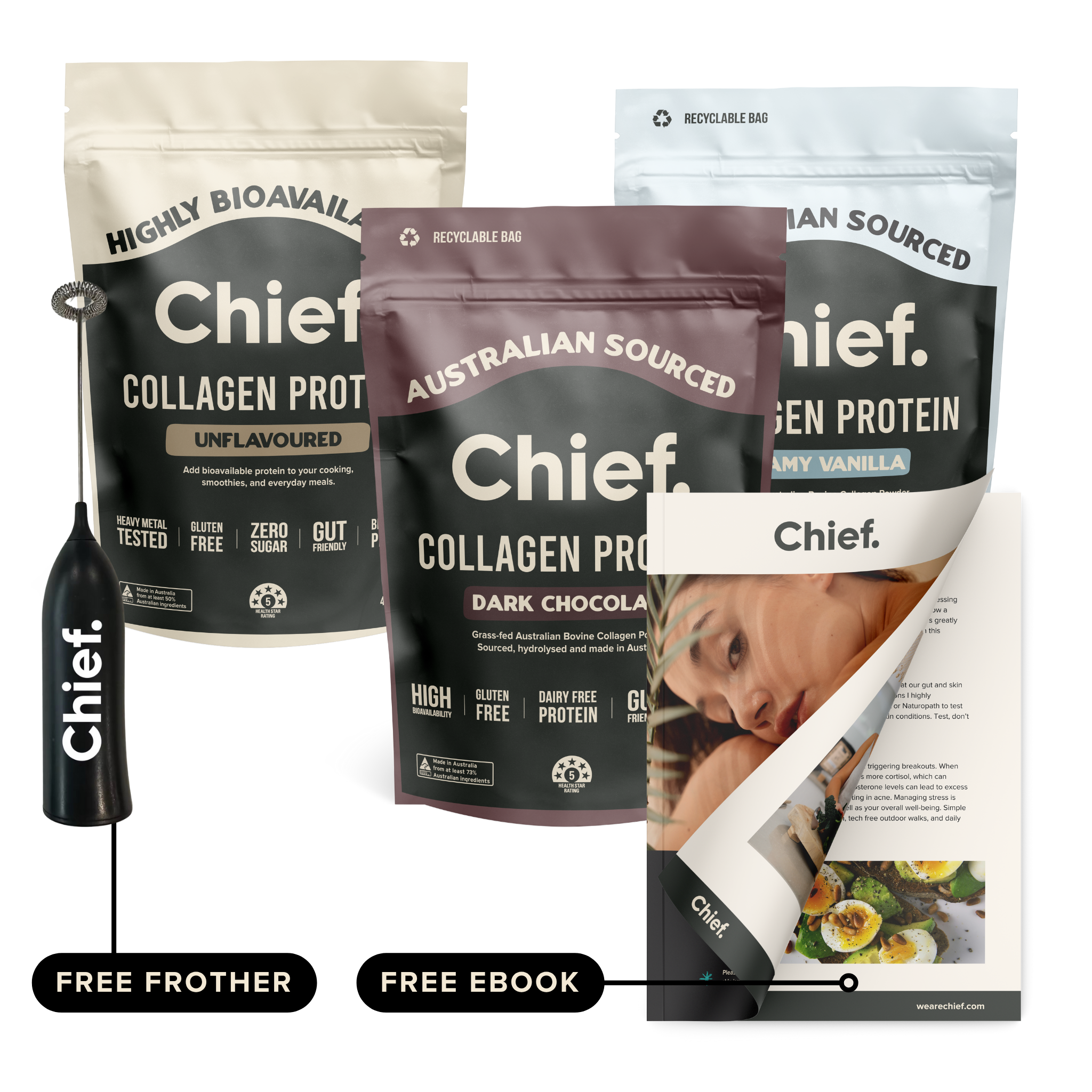 Increase your daily protein intake while supporting glowing skin, stronger nails, muscle recovery, joints and tendons, and your gut health with clean Collagen Protein!
